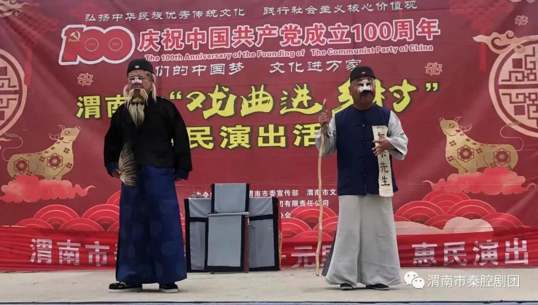 為慶祝中國共產(chǎn)黨成立100周年,弘揚(yáng)社會(huì)主義核心價(jià)值觀,將中華民族優(yōu)秀傳統(tǒng)文化根植于居民精神文化生活,轉(zhuǎn)化成人民的情感認(rèn)同和行為習(xí)慣,近期,由中共渭南市委宣傳部、渭南市文化和旅游局主辦、渭南市戲曲家協(xié)會(huì)承辦、渭南市秦腔劇團(tuán)有限責(zé)任公司演出的“我們的中國夢(mèng),文化進(jìn)萬家, 渭南市‘戲曲進(jìn)鄉(xiāng)村’惠民演出活動(dòng)”如火如荼的進(jìn)行中。我們?yōu)閺V大鄉(xiāng)村群眾戲迷朋友送來豐富的文化大餐讓村民在家就可以了解、熱愛和傳承秦腔傳統(tǒng)文化,不斷豐富渭南人民的精神文化生活。