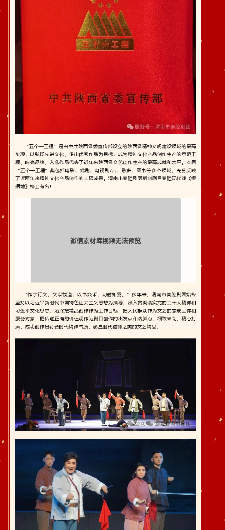 秦腔現代戲《根據地》榮獲陜西省第十七屆精神文明建設“五個一工程”優秀作品獎!