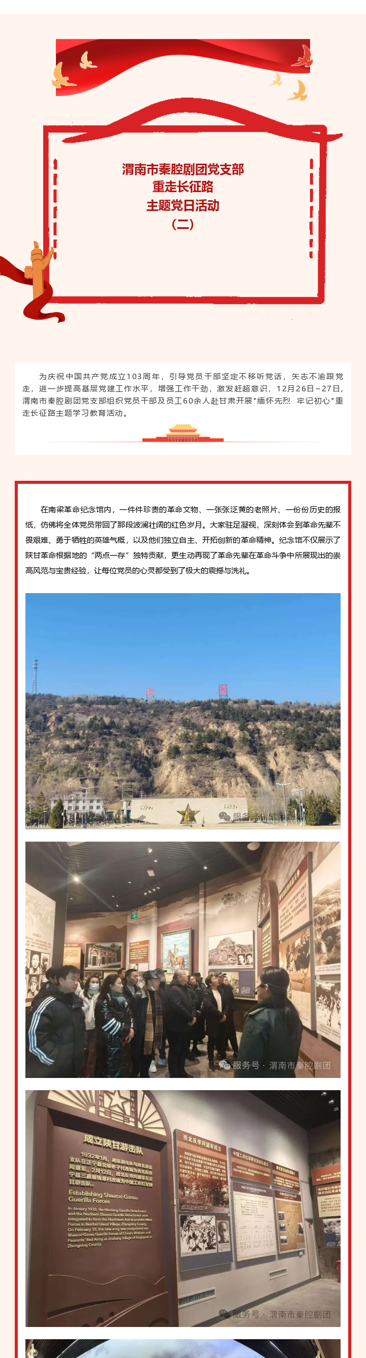 緬懷先烈 牢記初心——中共渭南市秦腔劇團黨支部“重走長征路”主題黨日活動二階段赴甘肅南梁、會寧革命基地學習