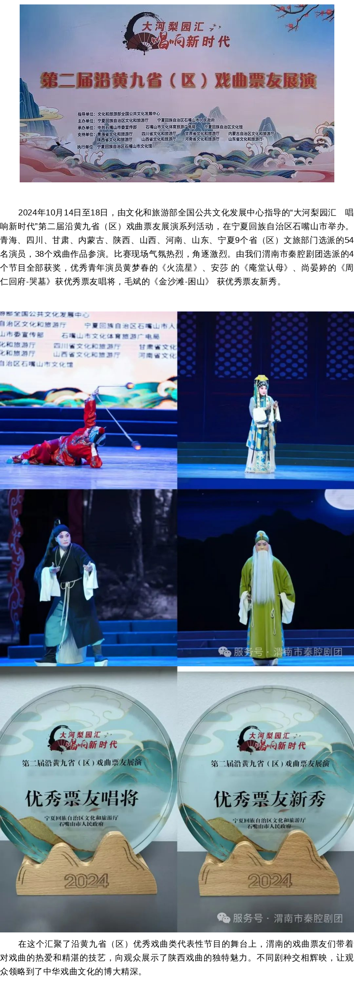 我團(tuán)多名優(yōu)秀青年演員在第二屆沿黃九省(區(qū))戲曲票友展演中獲得多個(gè)獎(jiǎng)項(xiàng)